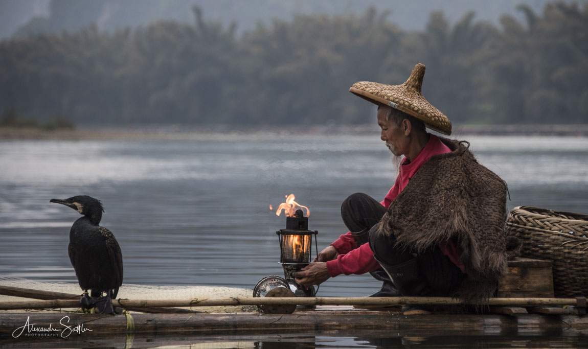 En chine sur la rivière Li, les pêcheurs utilisent des cormorans.